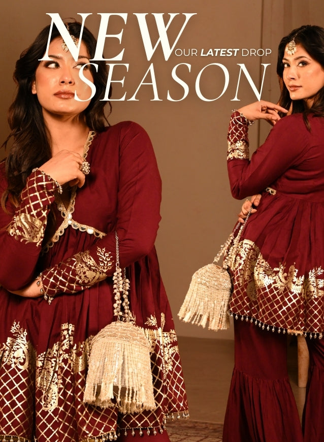 The Bushra Red Suede Box Bag is a beautifully handcrafted statement piece adorned with intricate cutdana and bead embroidery in shimmering red. Its structured silhouette and rich suede texture add an elegant, festive charm to any outfit. Designed for occasions when you want to...