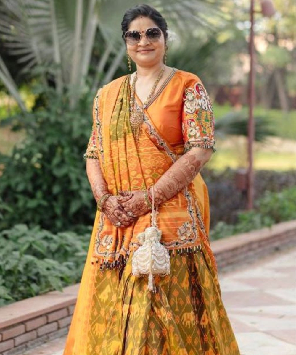Graceful and fluid in form - the Gulzar Gold & Silver Georgette Embellished Mini Bucket Bag blends heritage charm with contemporary elegance. Crafted in dual-tone crystal embroidery on a beautiful gold georgette, this bucket bag is layered with cascading crystal work and draped detailing that creates soft movement and texture. Finished with a drawstring closure, this handcrafted piece is perfect for festive gatherings and wedding celebrations. It doesn't fit in your phone but fits in most of your essentials.